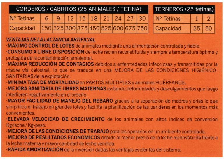 La leche siempre disponible, fresca, mezclada homogeneamente y a una temperatura óptima, es garantia de éxito en la cría de sus animales y en la rentabilidad de su explotación.
